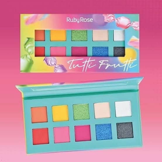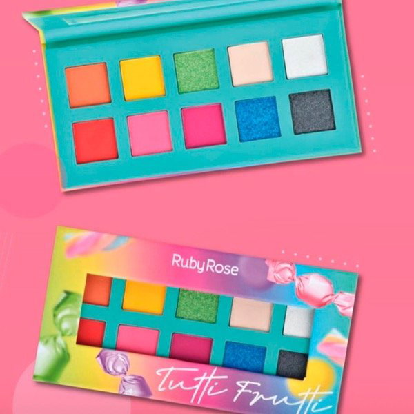 La paleta de sombras de ojos Tutti Frutti tiene 10 colores, 6 tonos matte y 4 metálicos, todas las sombras son súper pigmentadas y suaves. La paleta se divide en tonos coloridos como rosa, morado, rojo, amarillo, azul, verde, naranja, 2 tonos claros y 1 grafito. Es genial para crear maquillajes coloridos y divertidos, hay innumerables posibilidades. Además, la paleta tiene un delicioso olor a tutti frutti.