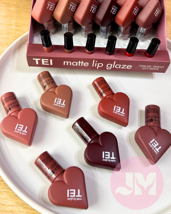 Un labial matte aterciopelado con envase en forma de corazón, súper pigmentado y cómodo de llevar. Su fórmula ligera se desliza fácil, deja un acabado suave sin resecar y dura horas sin sentirse pesado.