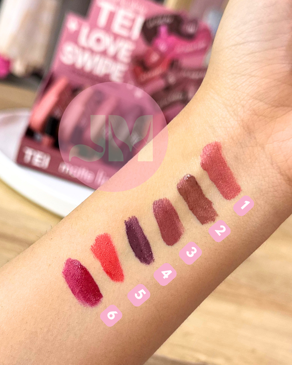 ⭐ Tip Juanita: Para que el matte dure más, delineá primero el borde del labio y aplicá el Love Swipe en capas finitas.