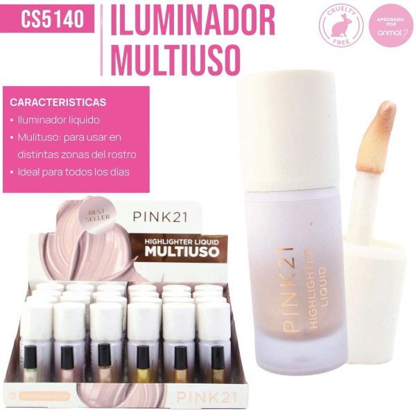 El Iluminador Líquido Multiuso de Pink21 es perfecto para darle a la piel un brillo instantáneo, fresco y luminoso.