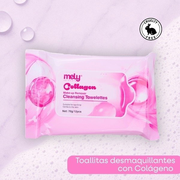 Las Toallitas Desmaquillantes con Colágeno de Mely están formuladas para remover el maquillaje profundamente mientras hidratan y dejan la piel fresca y suave. Son ideales para ojos, labios y rostro, incluso para piel sensible.