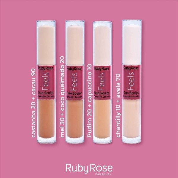 El Duo Sculpt Feels de Ruby Rose es un producto 2 en 1 que combina corrector y contorno líquido en un solo envase, ideal para lograr un maquillaje de piel definido, iluminado y natural.