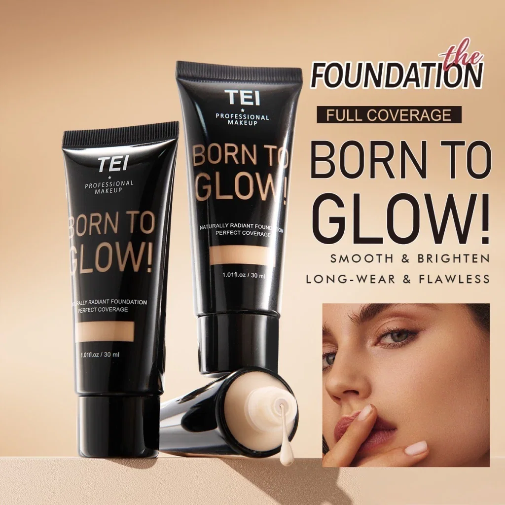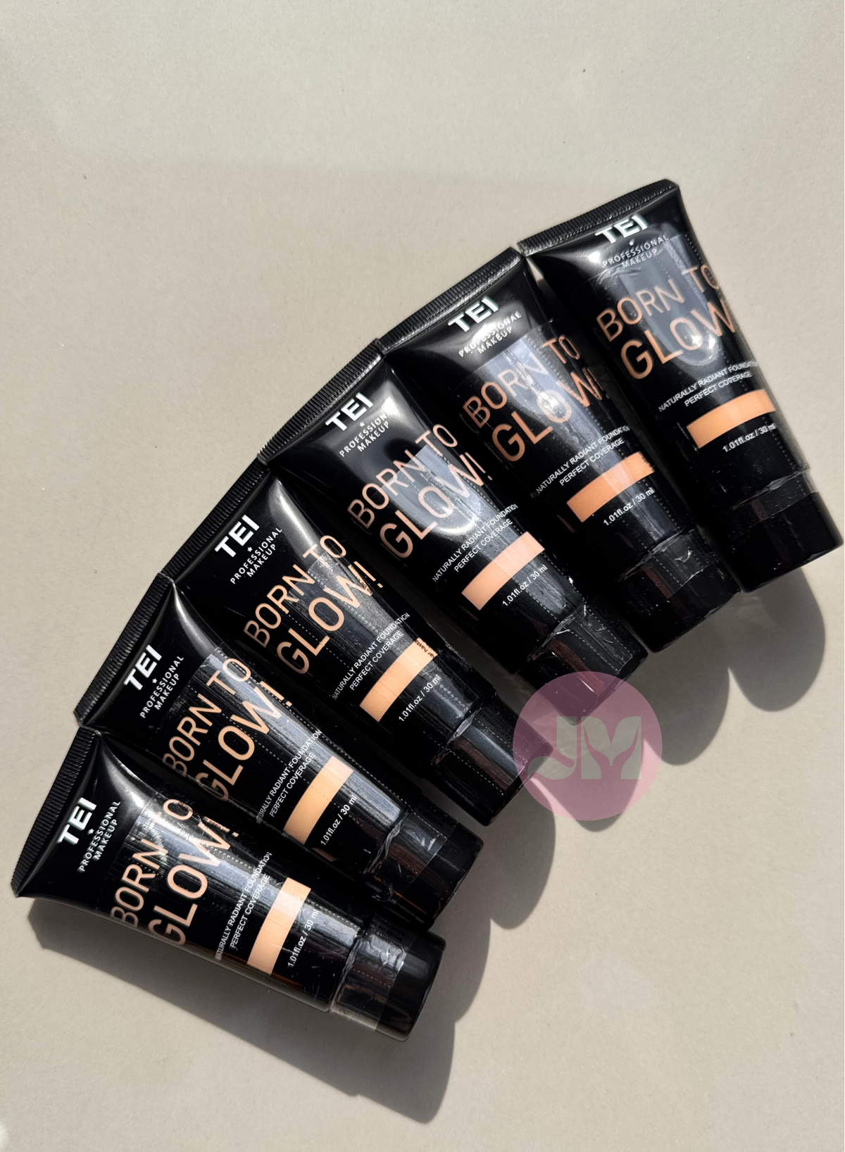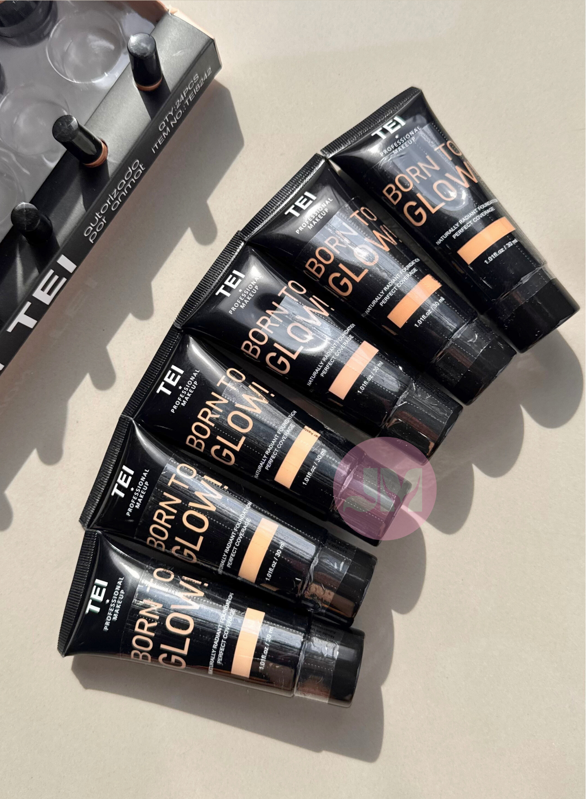 La Born to Glow de TEI es una base líquida de cobertura media a alta, con acabado radiante y efecto piel luminosa.