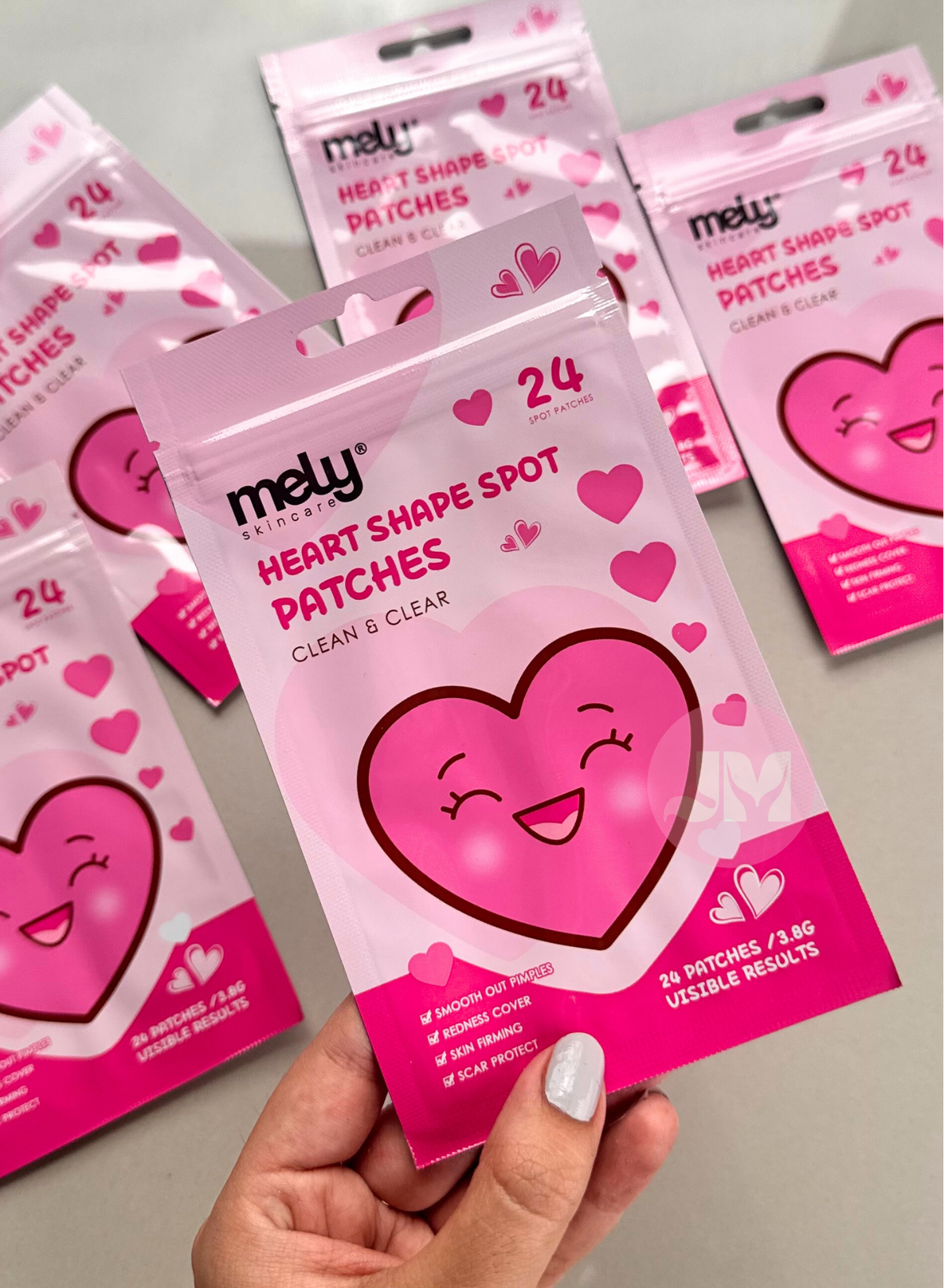 Los Heart Shape Spot Patches de Mely son parches hidrocoloides diseñados para tratar imperfecciones localizadas de forma eficaz y divertida. Su forma de corazón permite cubrir con precisión granitos o brotes, absorbiendo impurezas mientras protege la zona de la suciedad, bacterias y el contacto involuntario con las manos. Actúan como una barrera física que favorece la cicatrización natural, disminuyendo la inflamación y el enrojecimiento. Son delgados, discretos y aptos para usar de día o de noche.